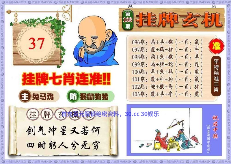 102期:⑧肖【虎鸡龙猴马蛇狗】开:鼠30准